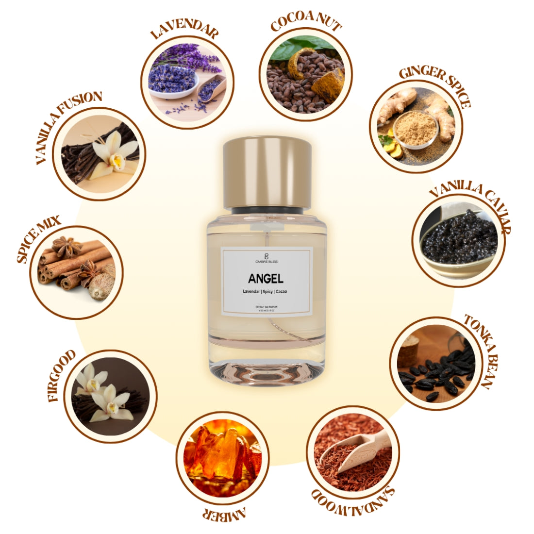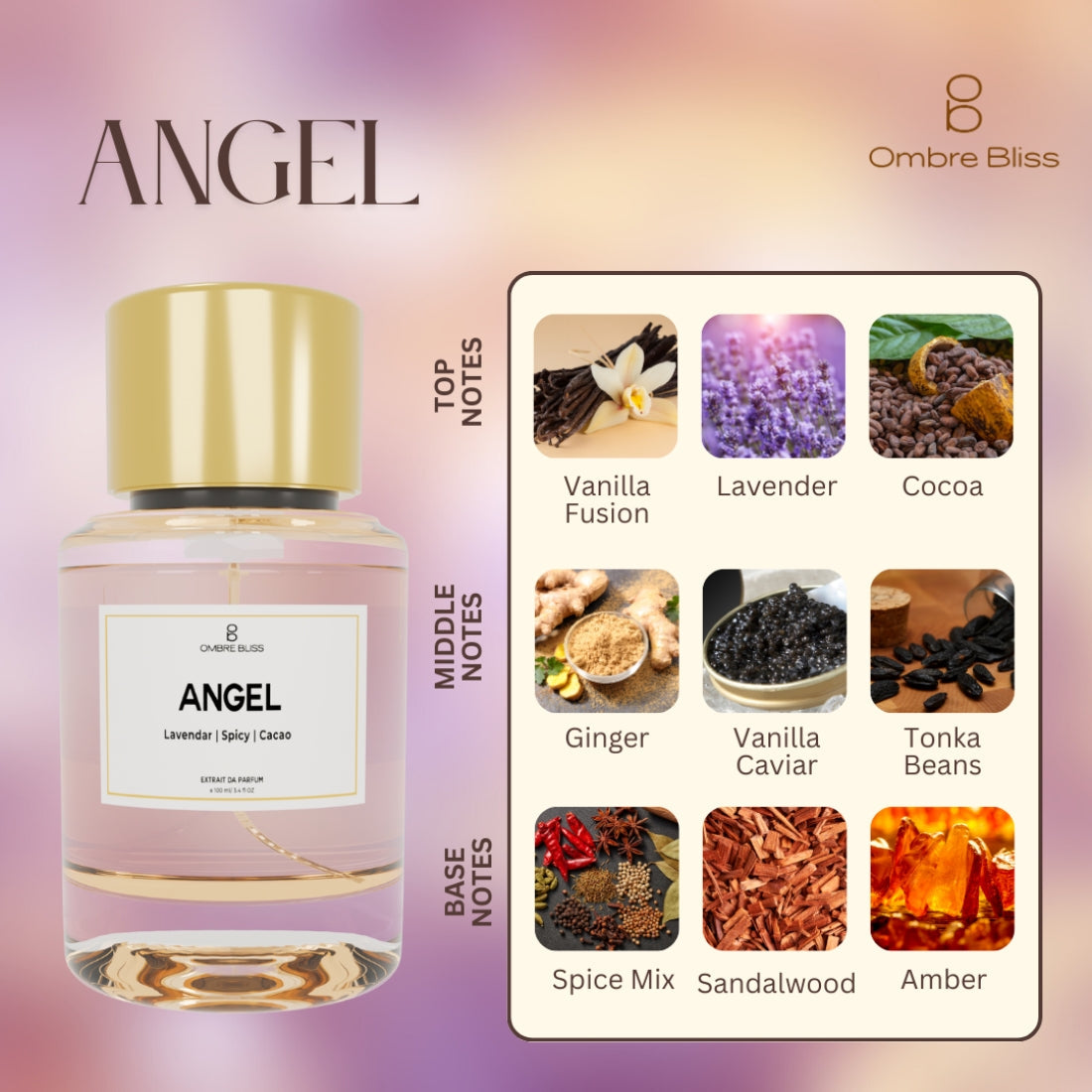 Angel is a luxurious Extrait de Parfum (EDP) that's phthalate-free, paraben-free, and cruelty-free. With a Upto25% fragrance concentration, it offers a long-lasting scent experience that's safe, ethical, and indulgent.
