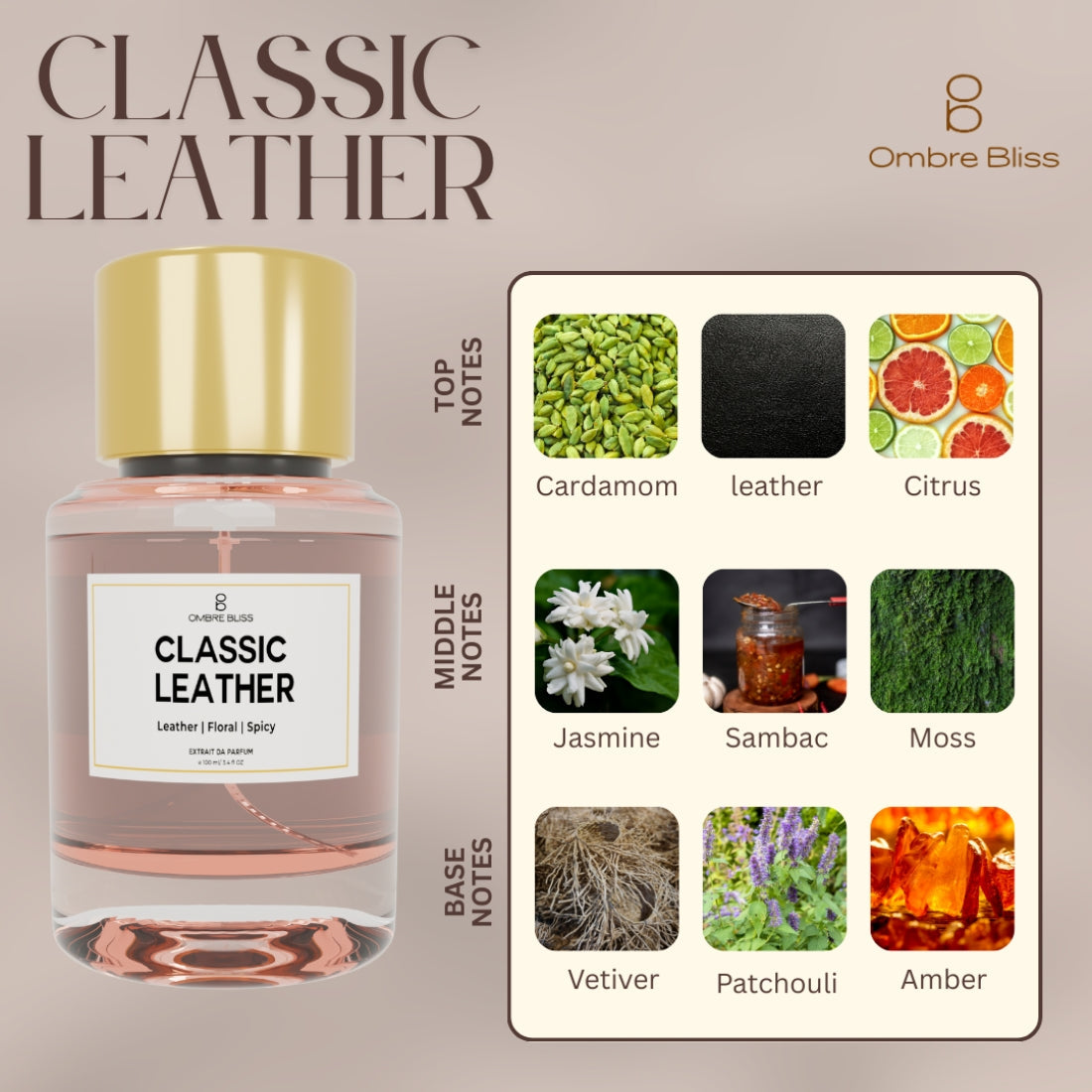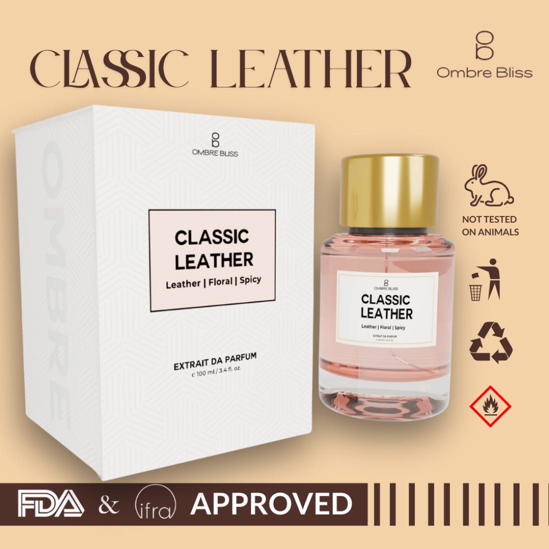 Classic Leather is a luxurious Extrait de Parfum (EDP) that's phthalate-free, paraben-free, and cruelty-free. With a Upto25% fragrance concentration, it offers a long-lasting scent experience that's safe, ethical, and indulgent.