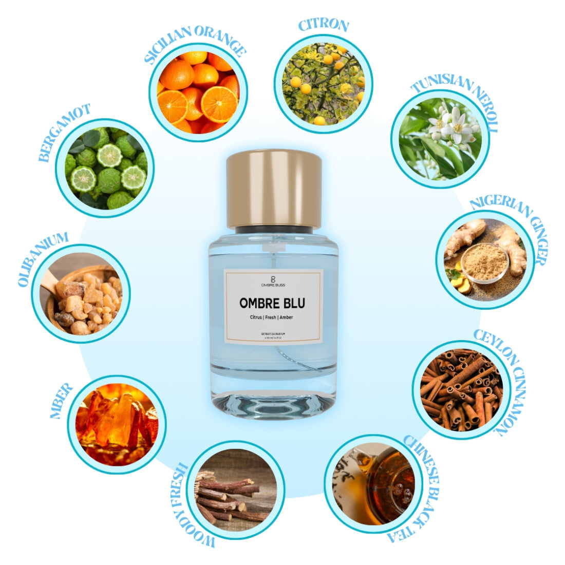 Ombre Bliss combines premium ingredients with unique scent compositions to create fragrances that evoke luxury and elegance. Each scent is designed to be long-lasting and distinctive.